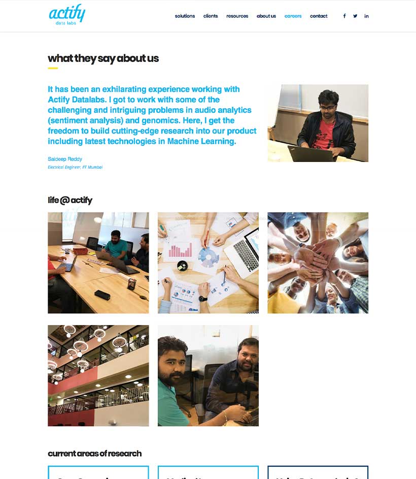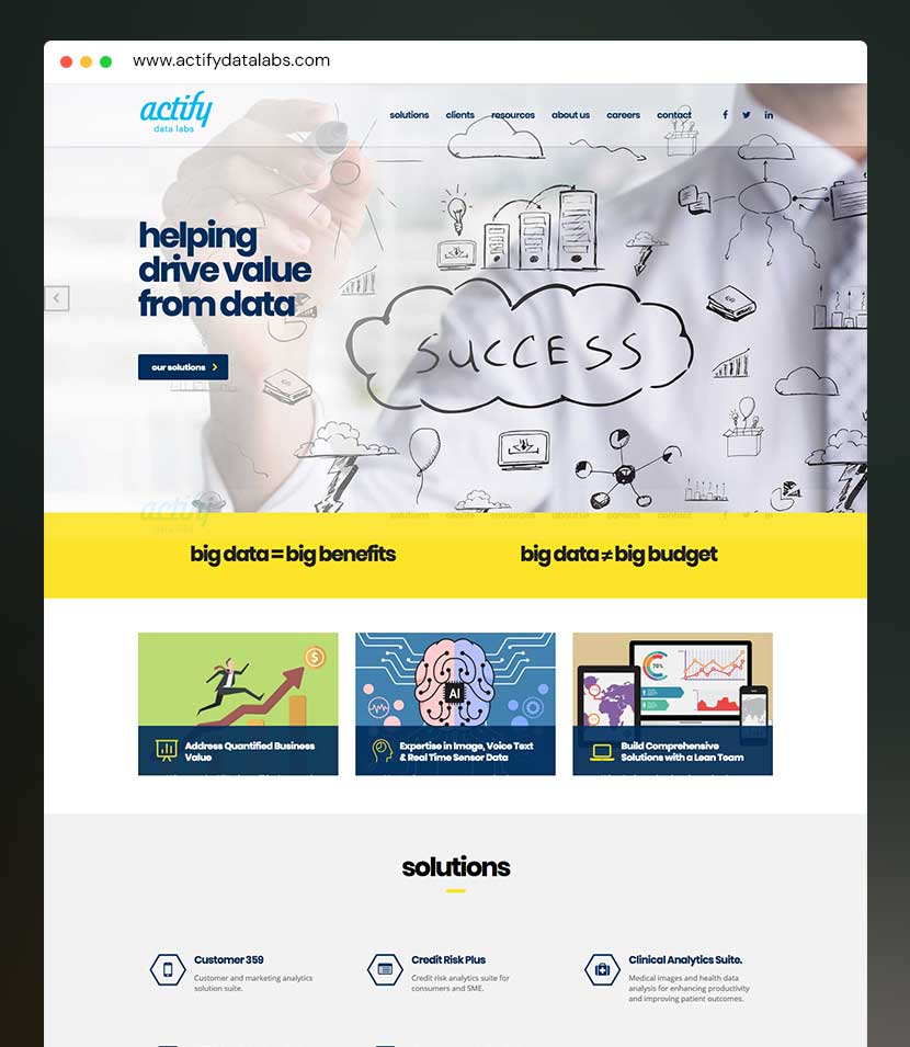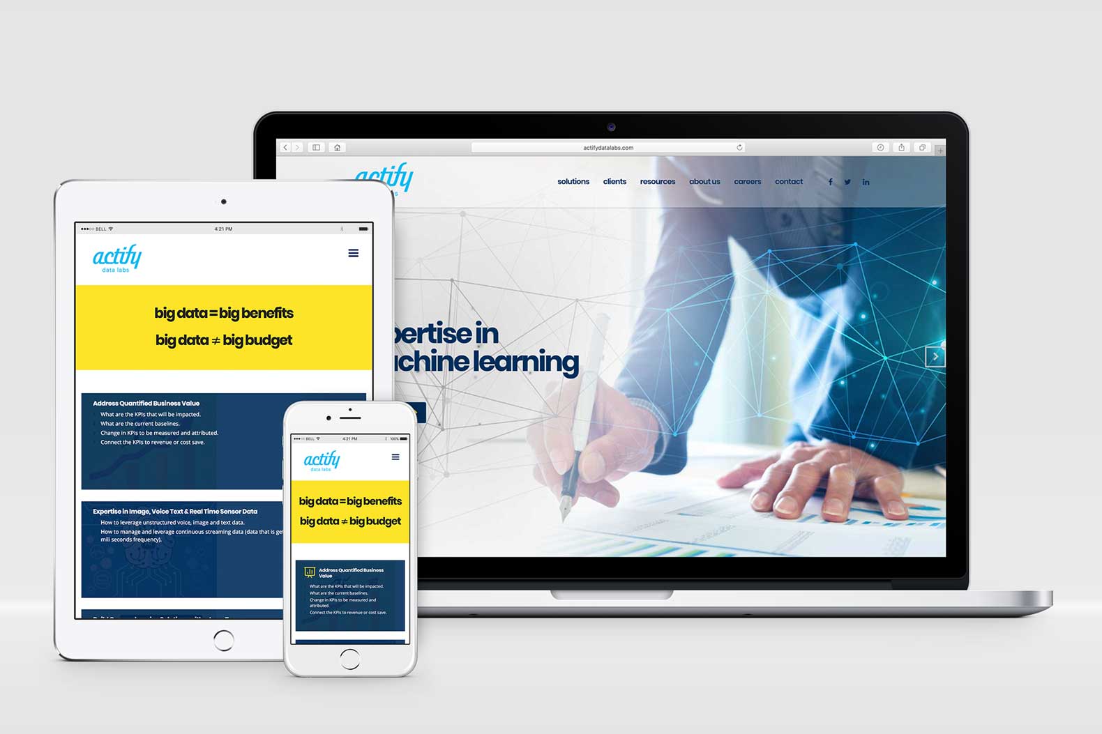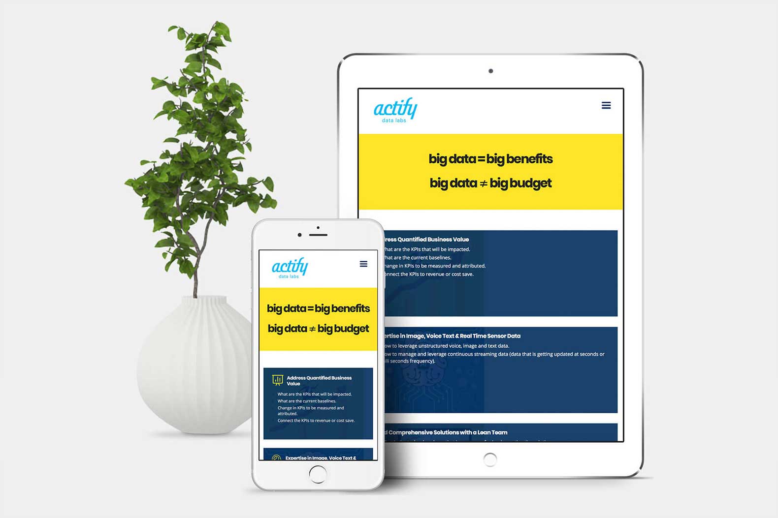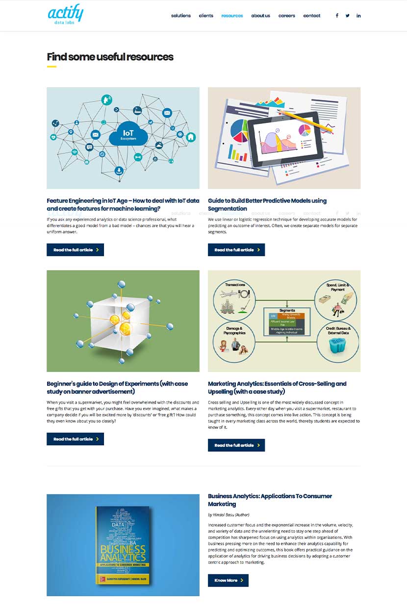 The design strategy for Actify Data Labs focuses on positioning the brand as a credible, forward-thinking Augmented Intelligence partner. The approach emphasizes clarity, trust, and measurable business impact. A stronger above-the-fold value proposition, structured solution hierarchy, and outcome-driven messaging improve usability and engagement. Visually, a modern, minimal interface with deep blues, high-contrast typography, and data-inspired elements enhances perceived sophistication. UX improvements prioritize scannability, dashboard-style layouts, and intuitive navigation. Trust is reinforced through case studies, client proof, and explainable AI visuals. Conversion is optimized with contextual CTAs and simplified lead forms, transforming the website into a strategic growth platform.