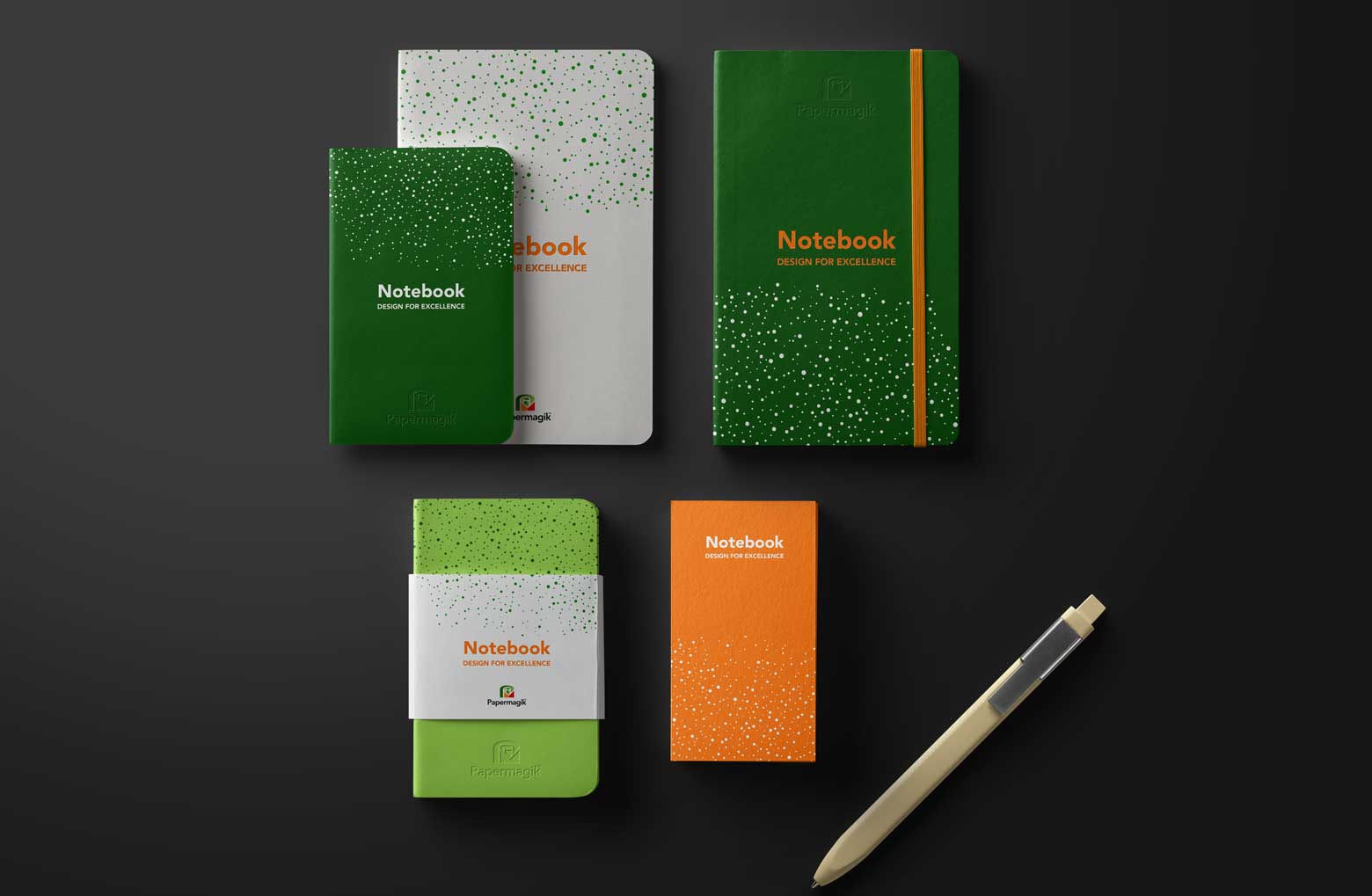 The Papermagik design project is a strategic brand identity that bridges the gap between premium quality and playful accessibility. Centered on the hero product of high-end notebooks and stationery, the visual language features a sophisticated deep green palette paired with dynamic, fluid gradients that evoke a sense of creative "magic" and organic flow.